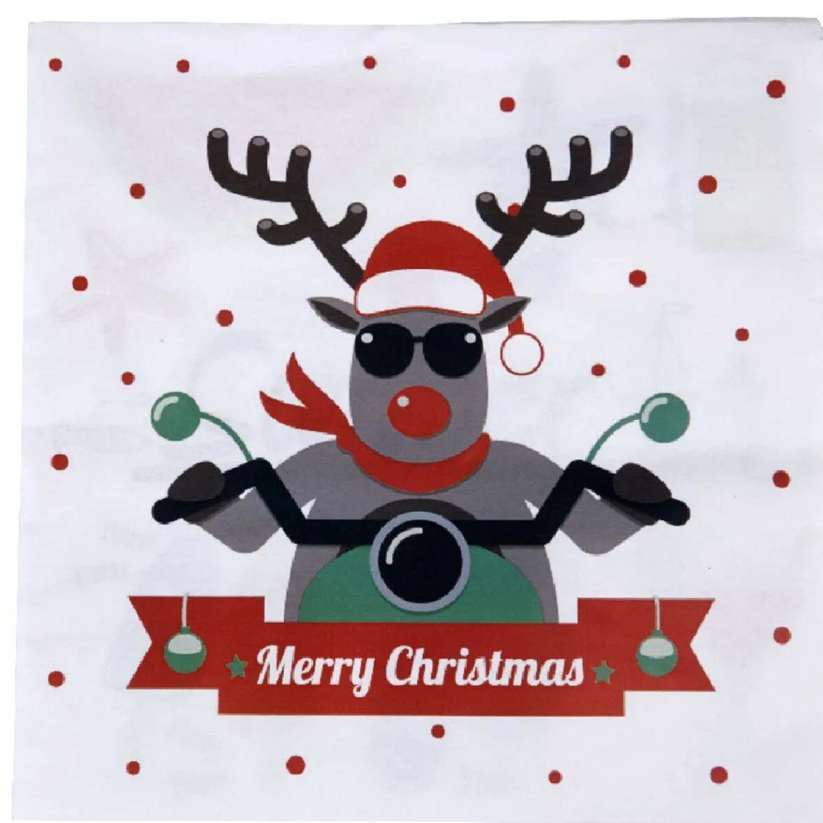 20 serviettes jetables design renne motard, dim. 33×33 cm, papier.
