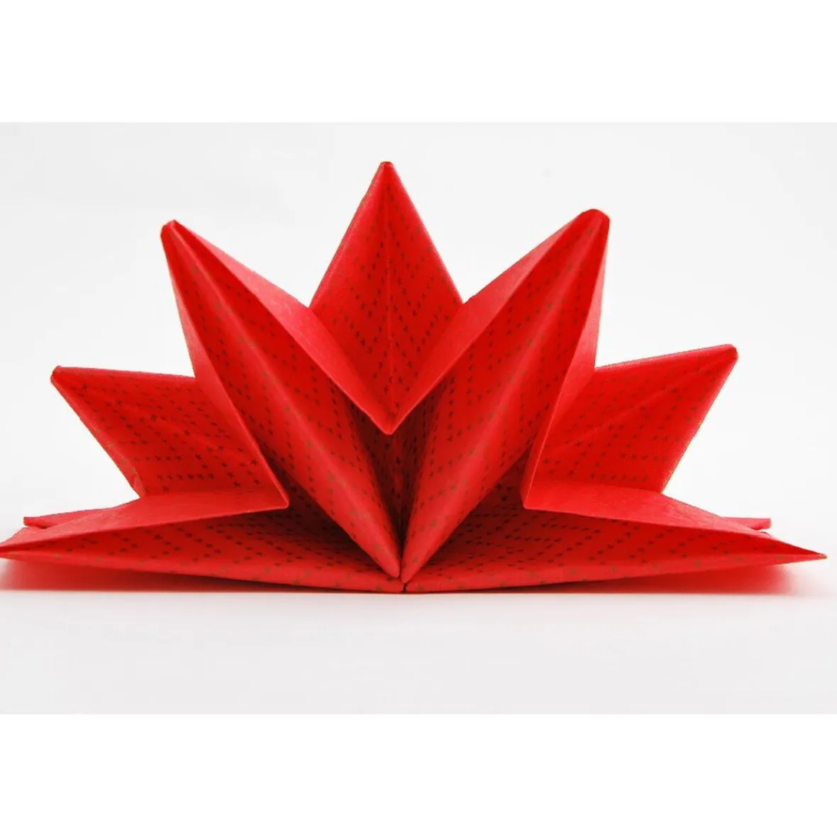 12 serviettes jetables pré-pliées rouges avec chevrons dorés, dim. 40×60 cm, 3 plis.