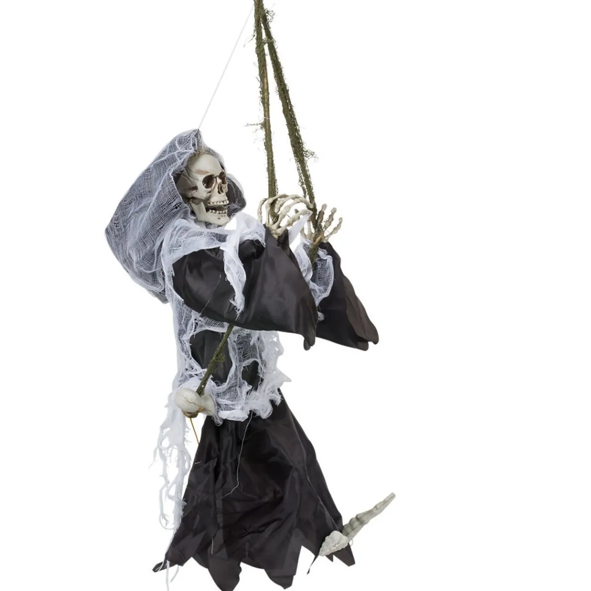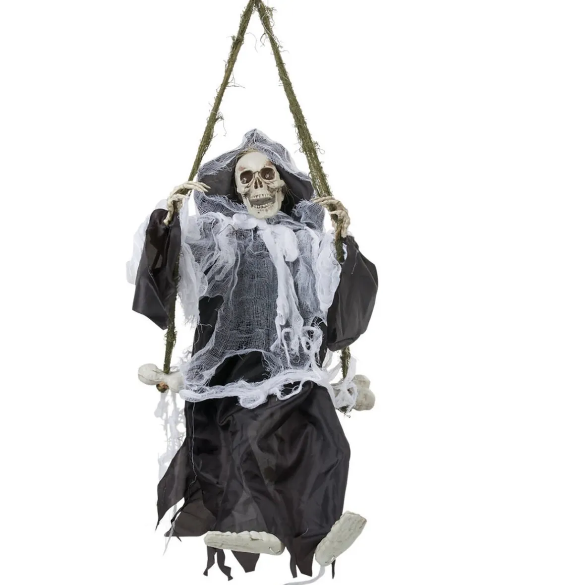 Ce squelette animé sur balançoire ne passera pas inaperçu parmi vos invités le soir de Halloween !