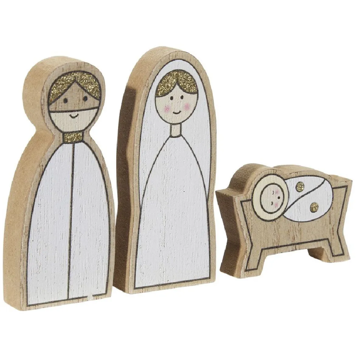 Composez votre crèche de Noël avec ces sujets représentant les 3 figures de la Nativité : Marie, Joseph et l’enfant Jésus.