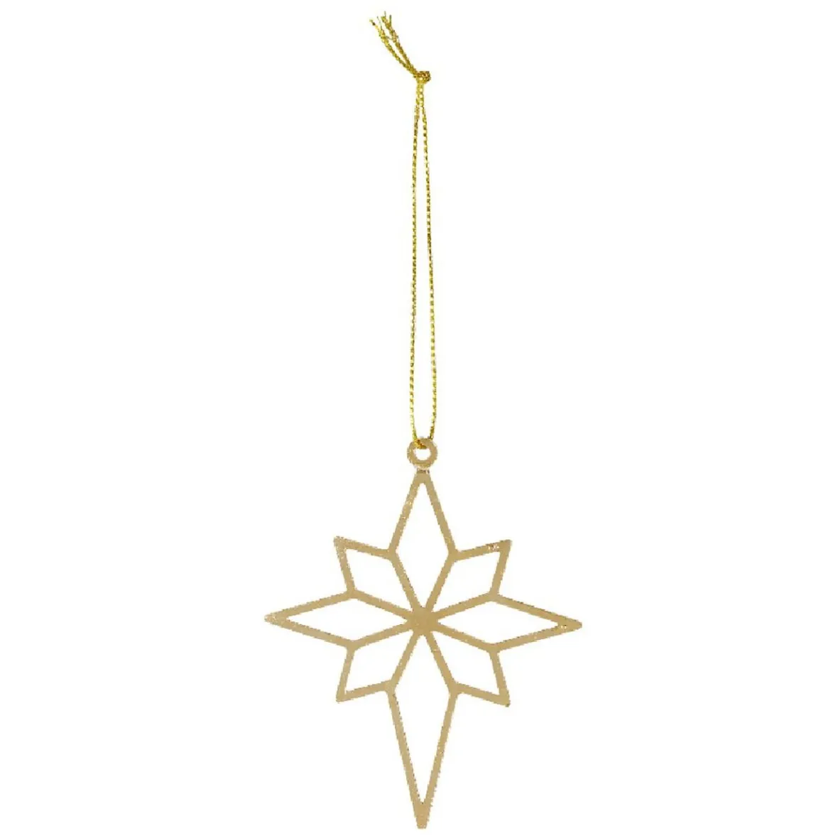 Décoration de Noël à suspendre en forme d’étoile ou lune en métal doré.