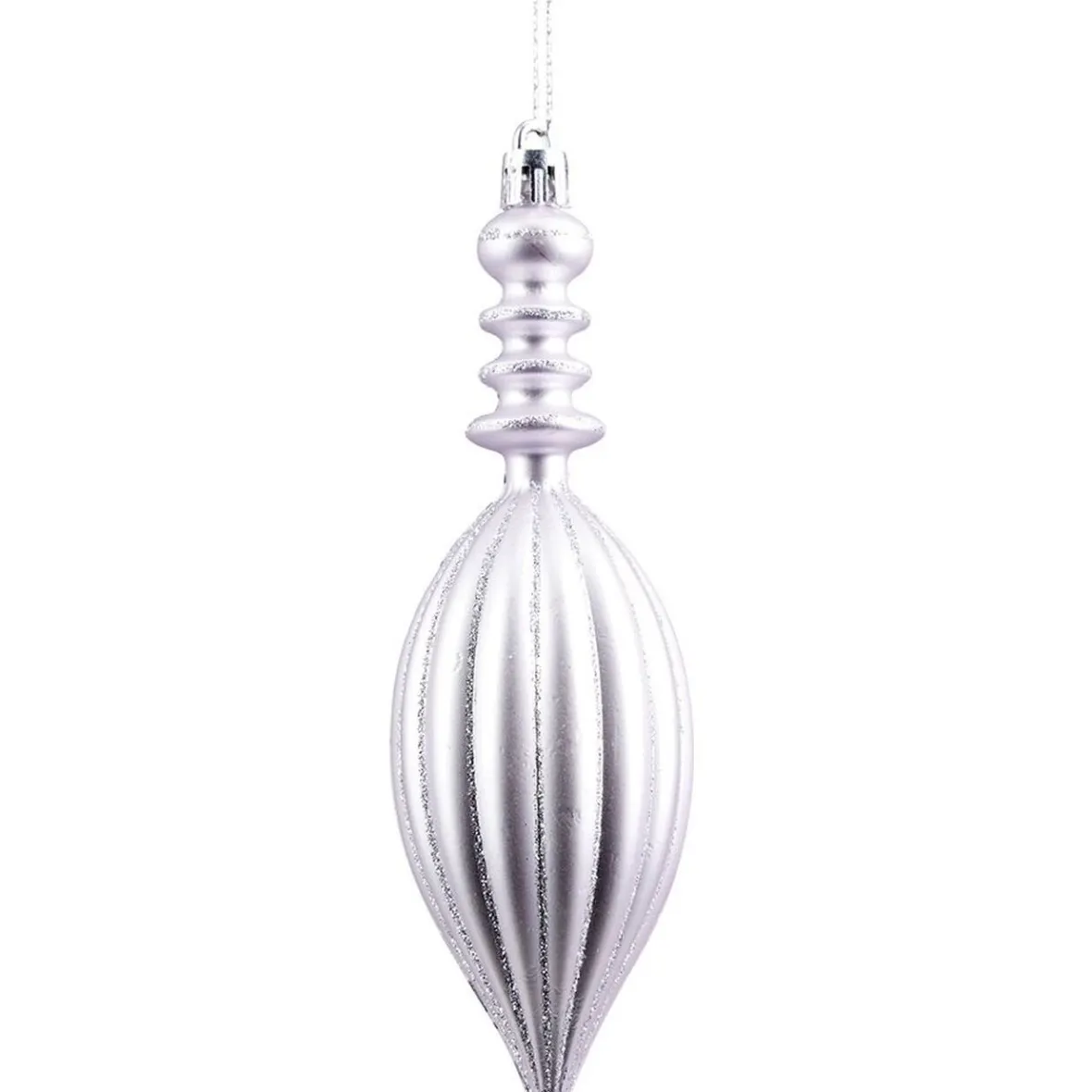 Suspension de Noël en forme de goutte parme et pailletée argentée.