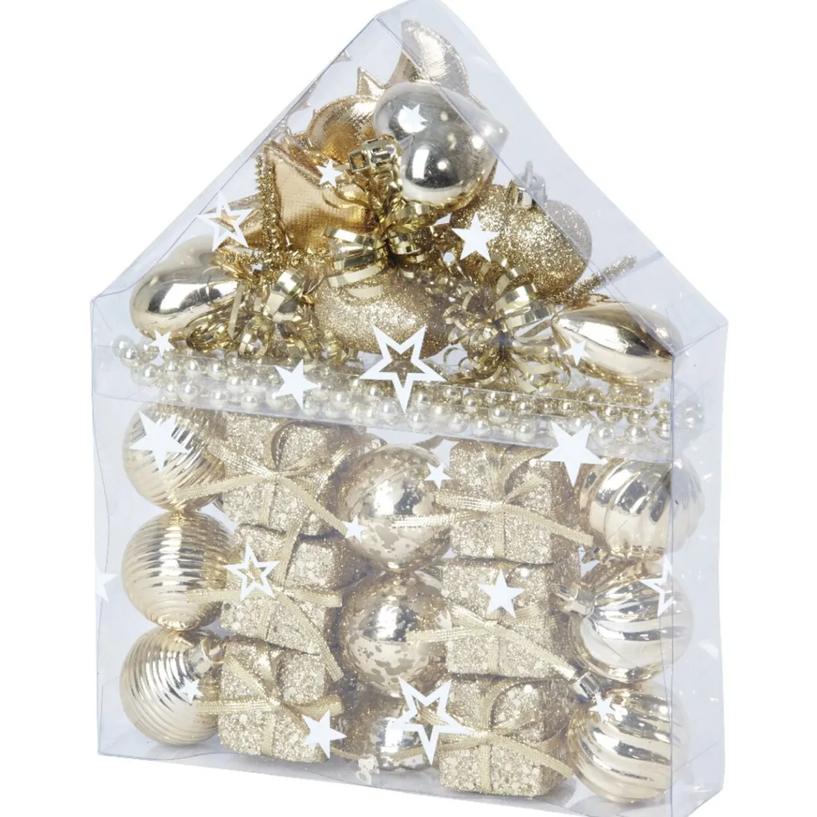 30 décorations pour sapin de Noël dorées à suspendre : boules, sapins, cadeaux, perles…, plastique.