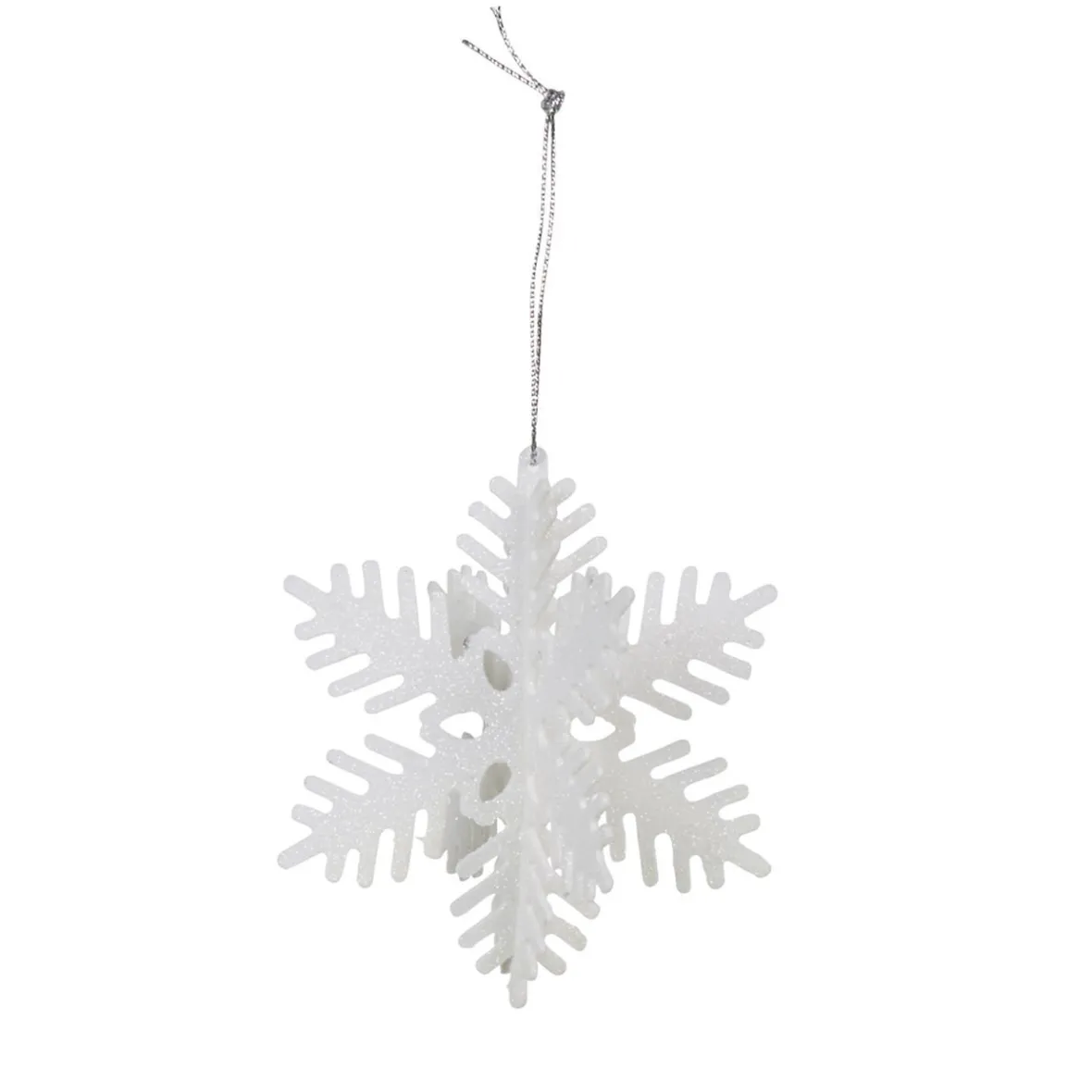 3 flocons argentés ou blanc à suspendre en forme de feuilles pour décoration de Noël.