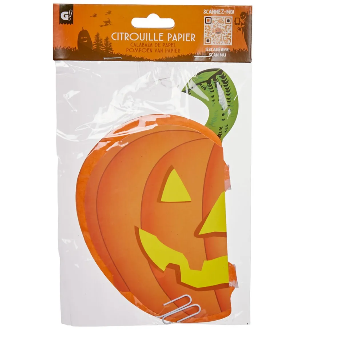 Décorer votre intérieur ou votre jardin avec cette tête de citrouille en papier pour une épouvantable fête d’halloween.