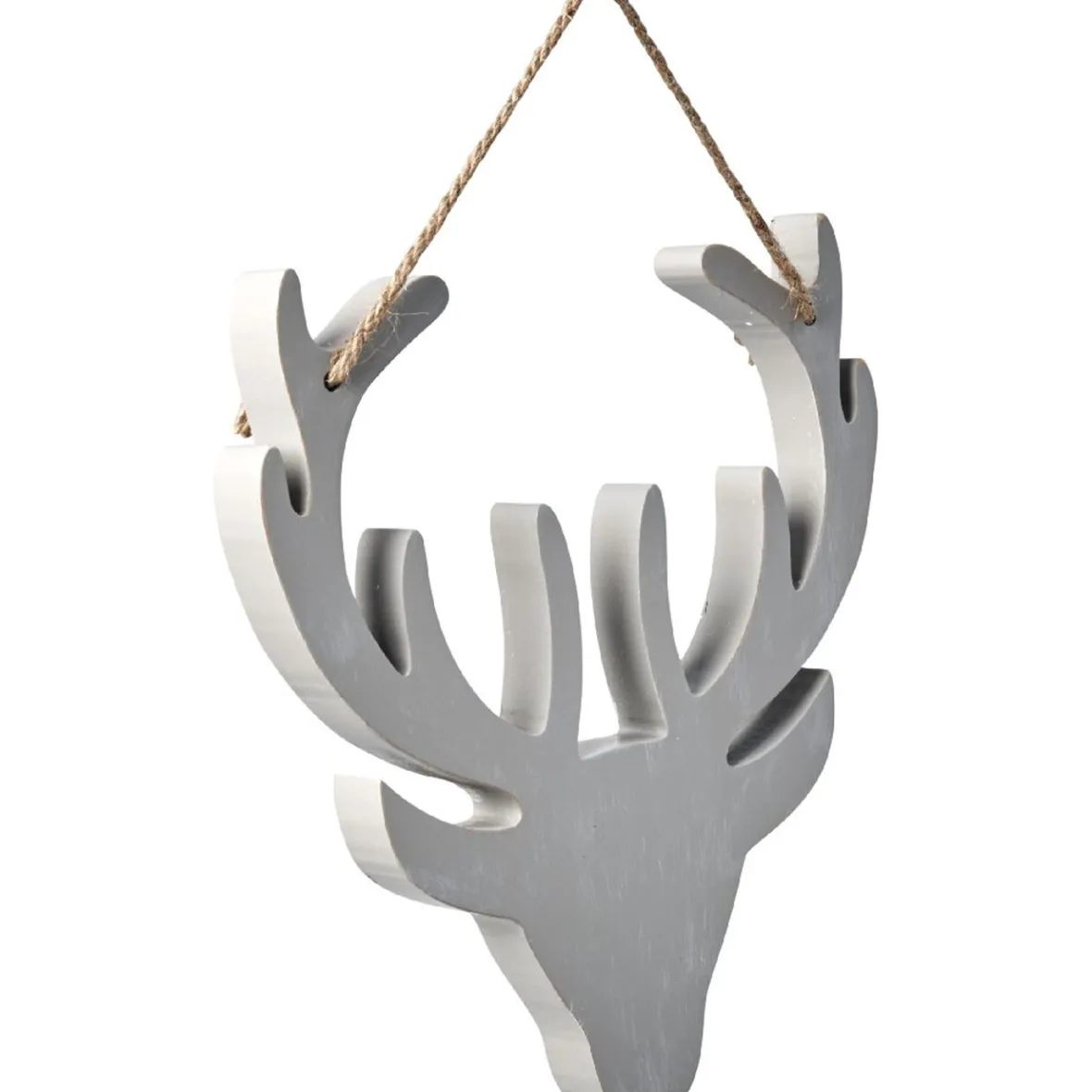 Suspension en forme de tête de renne beige grisé, idéal pour apporter un esprit nature à votre décoration de Noël.