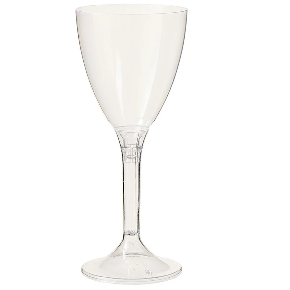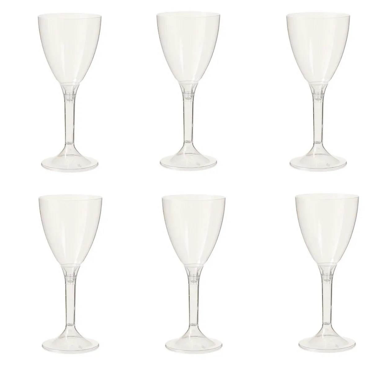Lot de 6 verres à pied transparents en plastique réutilisable.