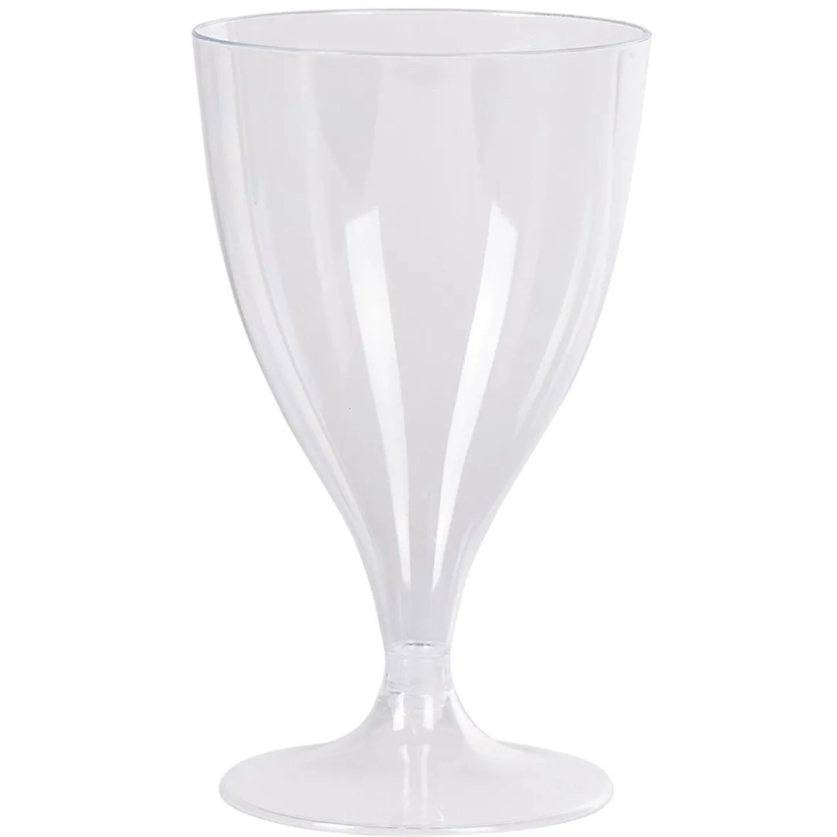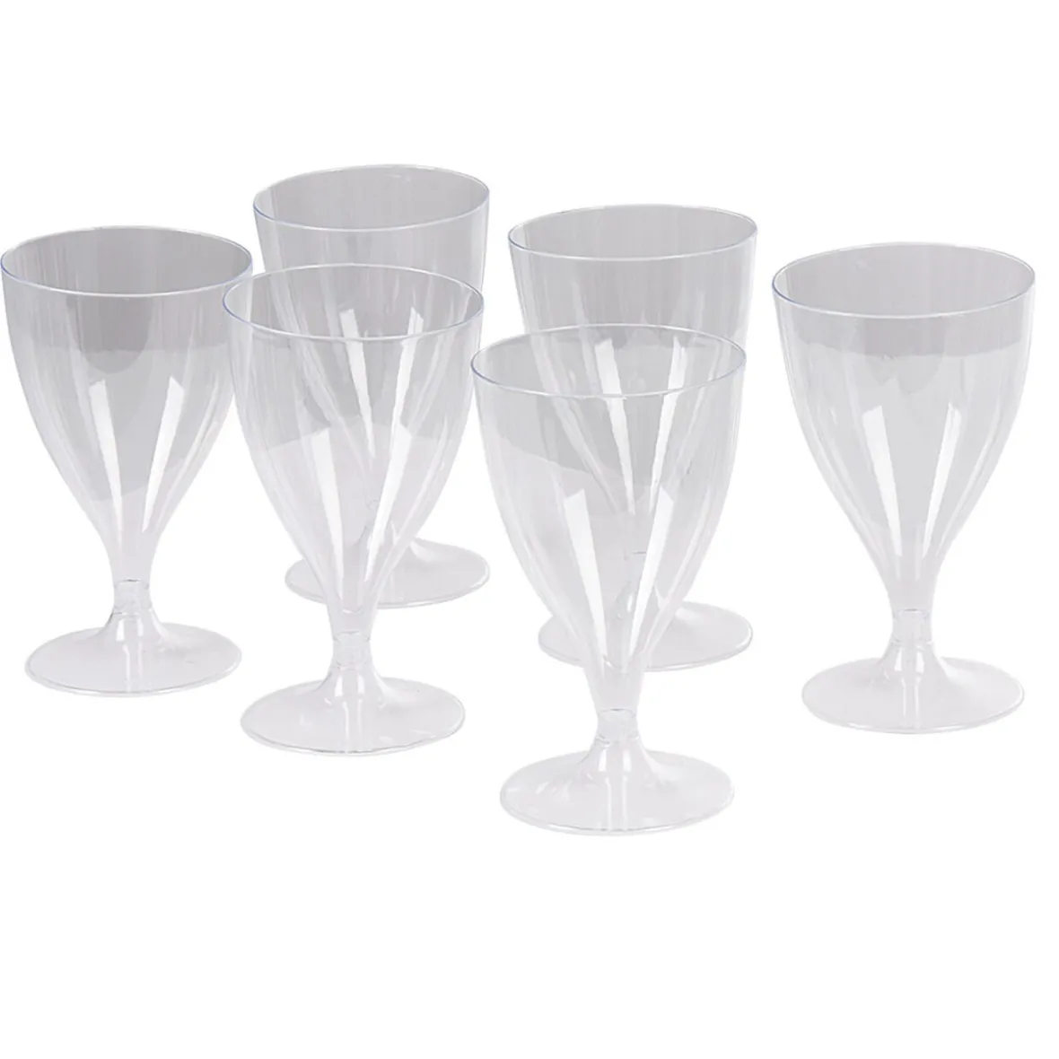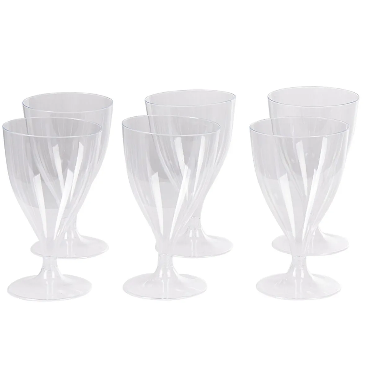 Lot de 6 verres bas à pied en plastique transparent, pour passer une bonne soirée sans casse ni vaisselle.
