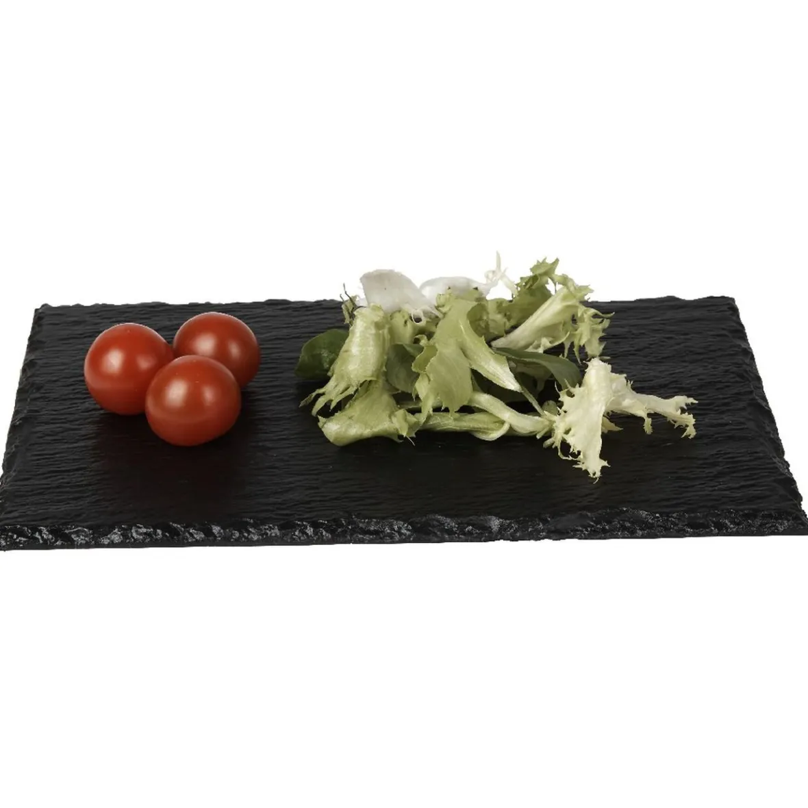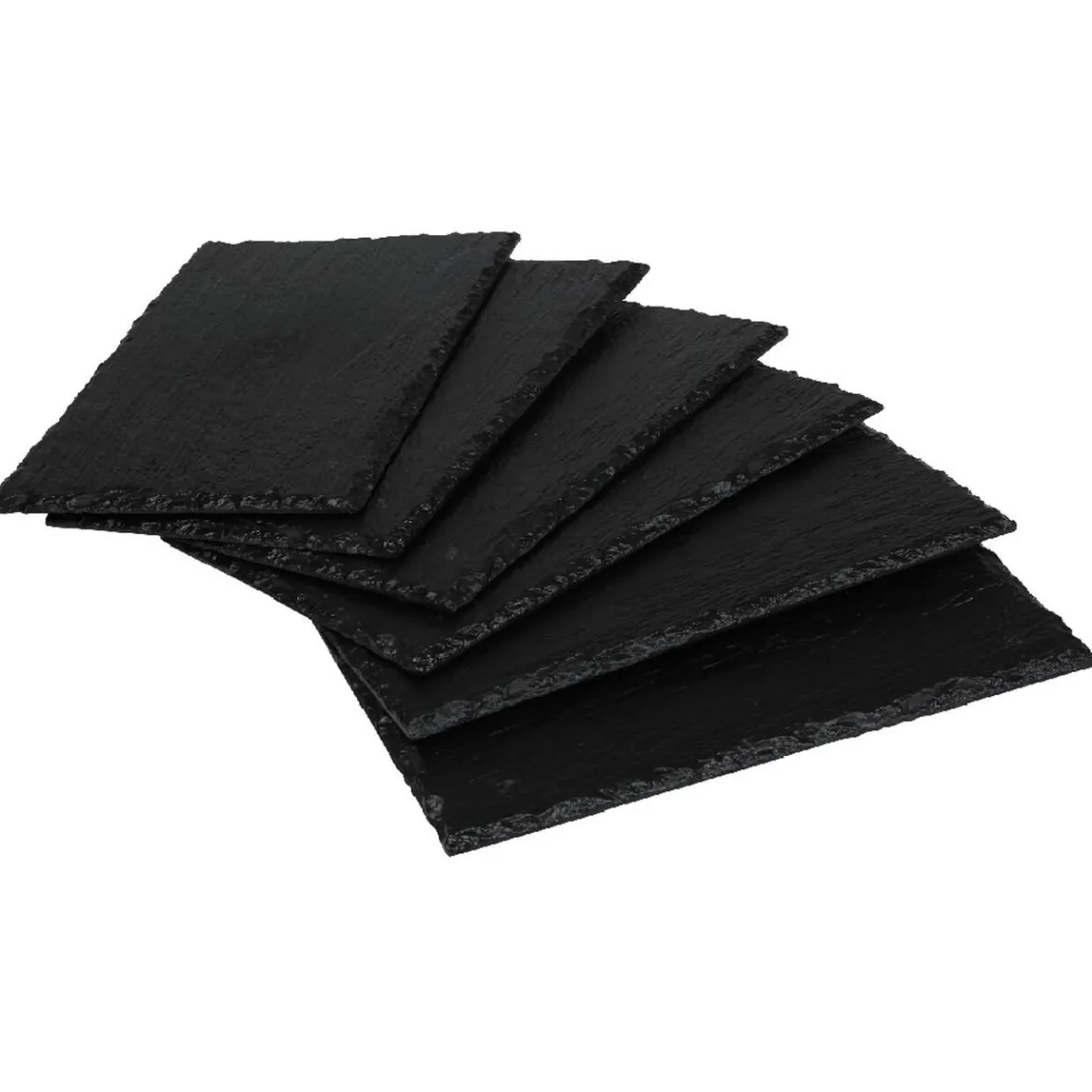 Lot de 6 assiettes rectangulaires en plastique imitation ardoise noire.
