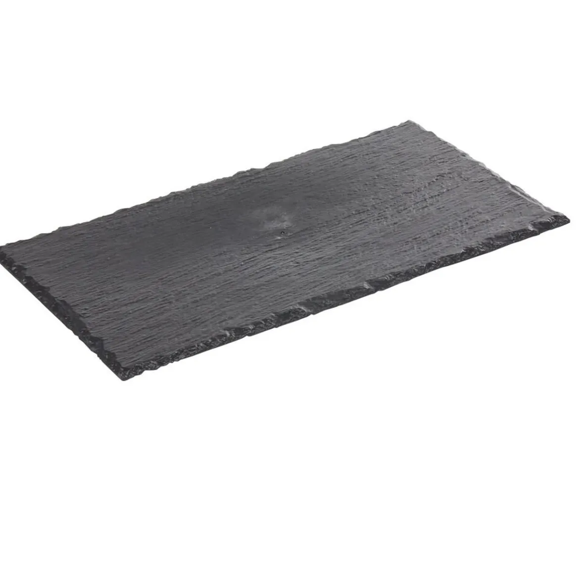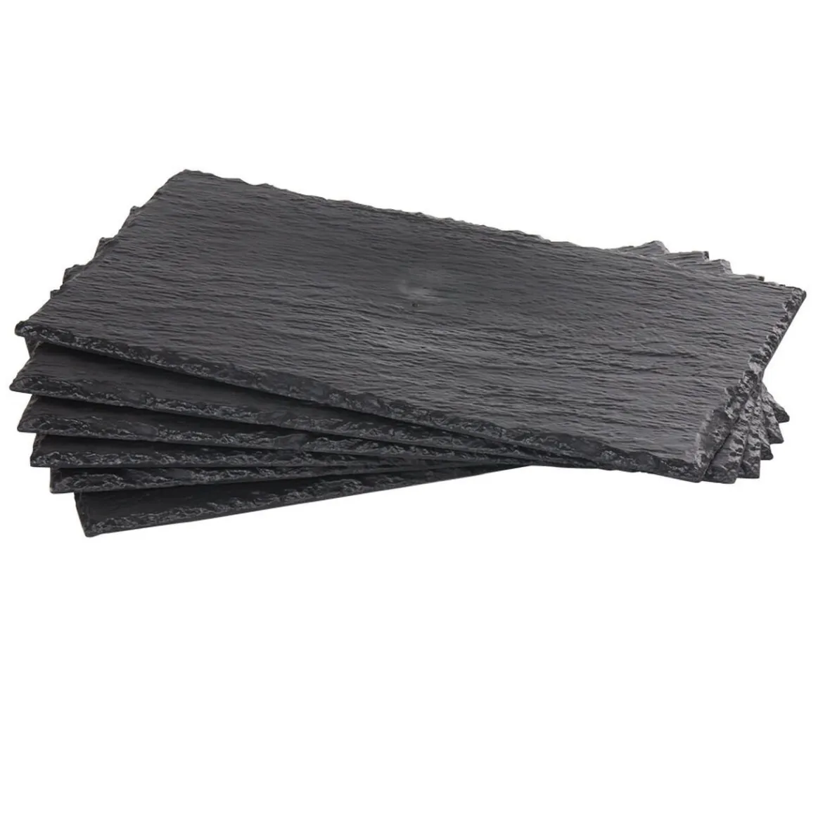 Lot de 6 assiettes rectangulaires en plastique imitation ardoise noire.