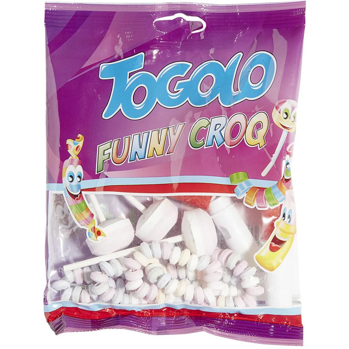 Assortiment de bonbons Togolo comprenant colliers, sucettes et sifflets