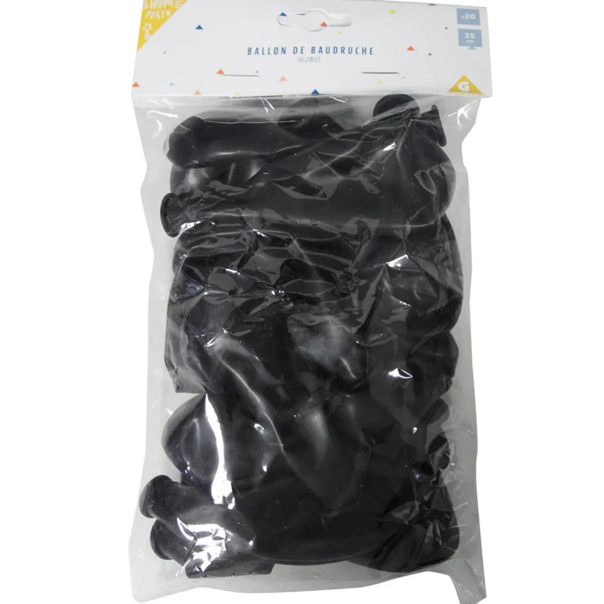Lot de 20 ballons de baudruche unis de couleur noire.