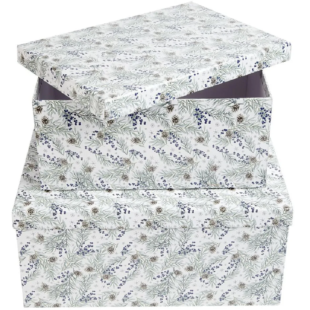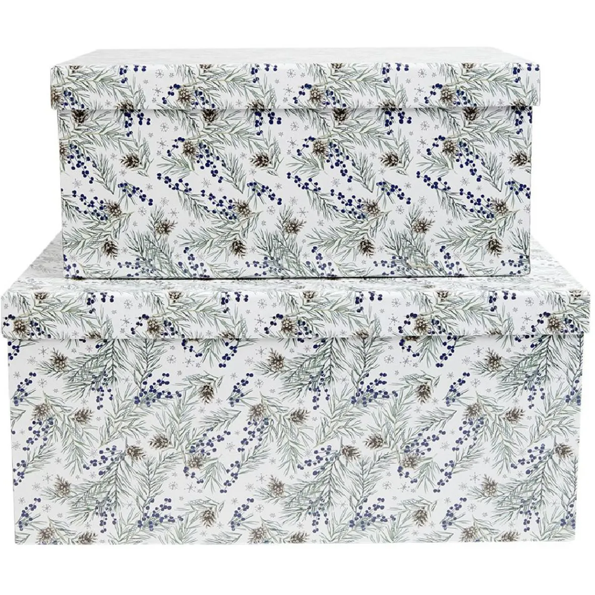 Lot de 2 boîtes blanches avec un style jardin d’Hiver pour faire vos cadeaux de Noël.
