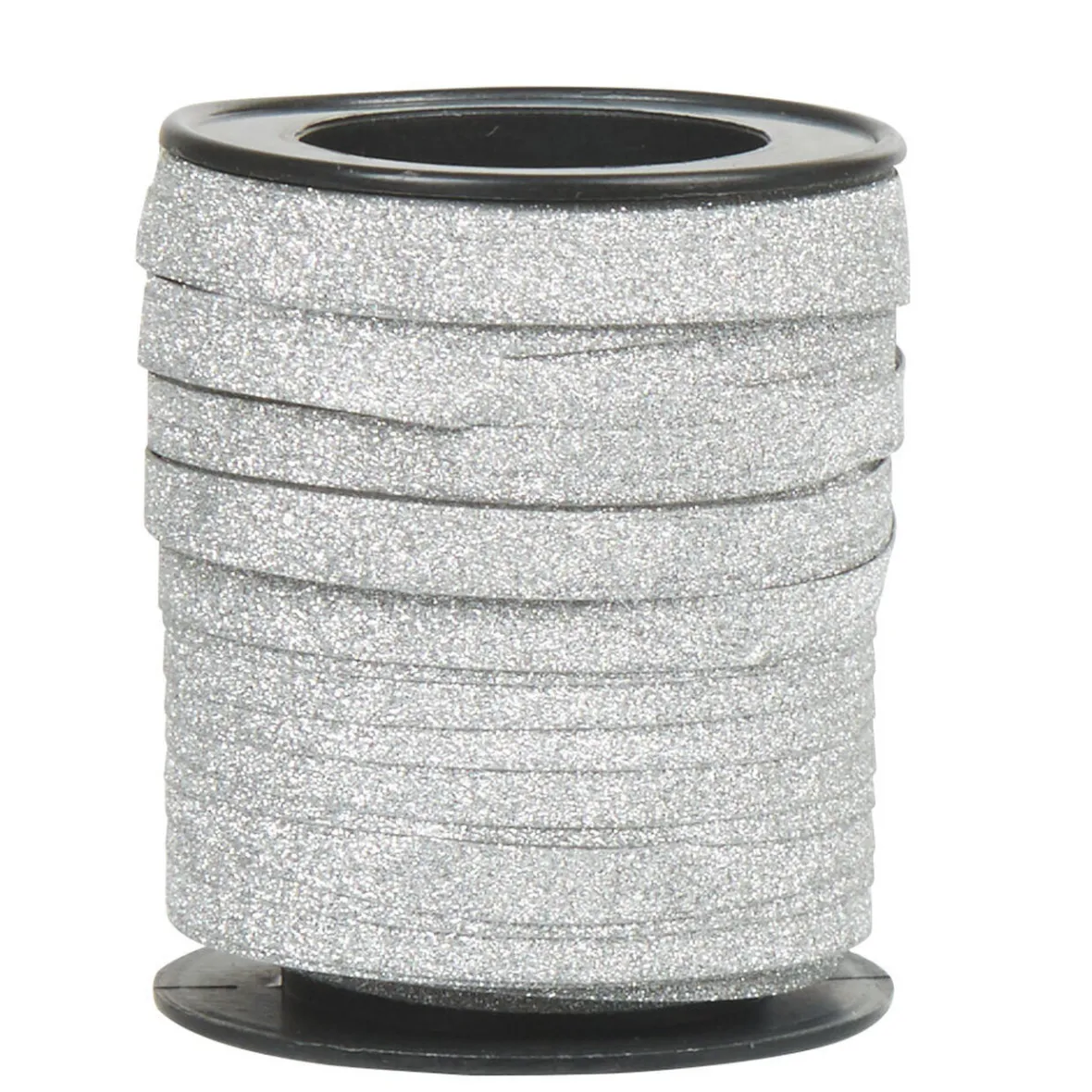 Bolduc argenté pailleté, longueur 40 m et largeur 5 mm, plastique.
