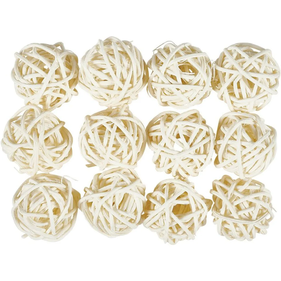 Lot de 12 boules de Noël faites de cordes en rotin à poser sur votre table pour une décoration réussie.