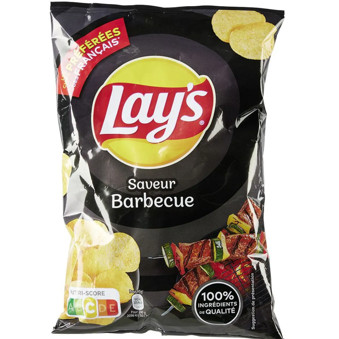 Paquet de 45g de chips Lay’s saveur barbecue.