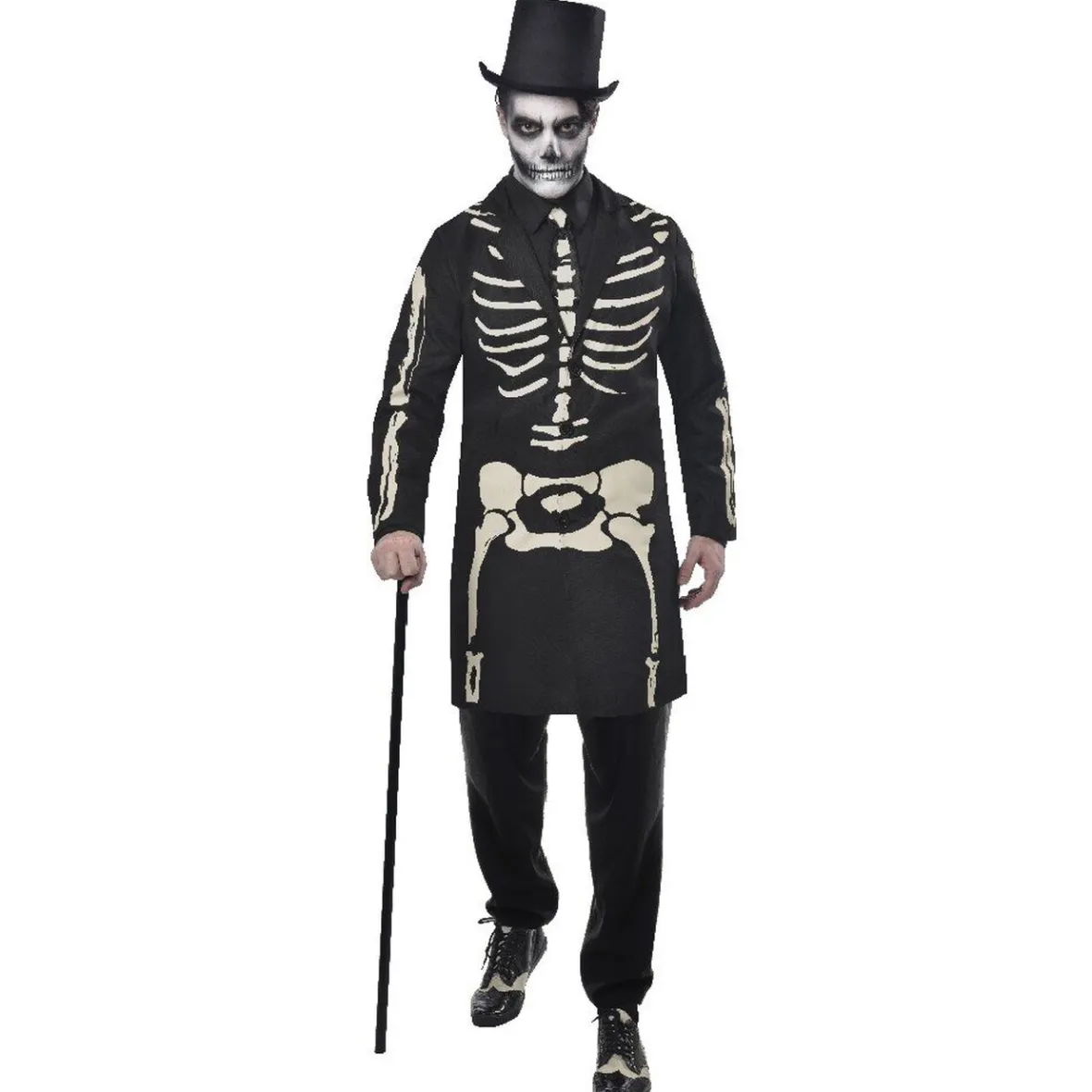 Déguisement roi gothique noir imprimé squelette pour homme.