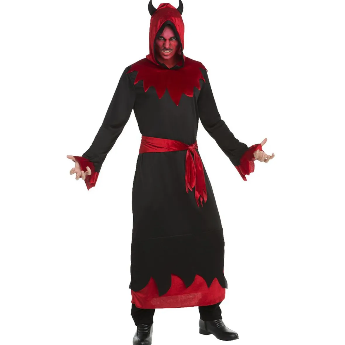 Déguisement pour adulte sur le thème du diable en taille S composé d’une capuche, une tunique et une ceinture.