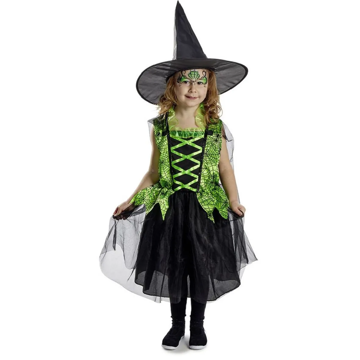 Incarne une jolie sorcière à l’occasion d’Halloween avec ce déguisement vert et noir composé d’une robe et un chapeau.