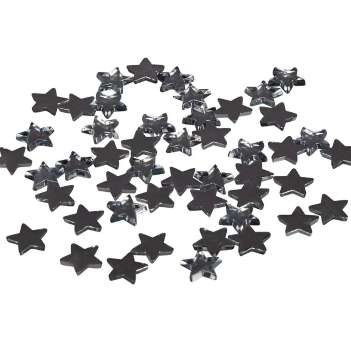 48 étoiles miroir, L. 1 cm, plastique. Peut s’utiliser en décoration de table pour mariage, baptême ou autre évènement.