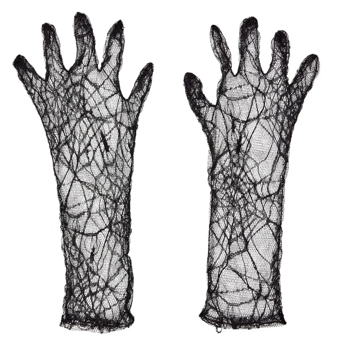Cette superbe paire de gants noir effet toile d’araignée sublimera votre déguisement de sorcière ou de reine maléfique! Idéal pour Halloween ou pour une autre soirée déguisée.