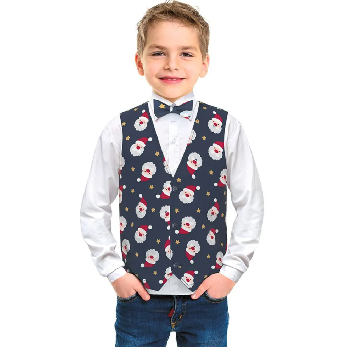 Déguisement pour enfant comportant un joli petit gilet et noeud papillon bleu marine avec motifs Père-Noël.