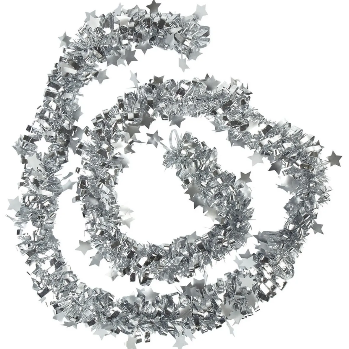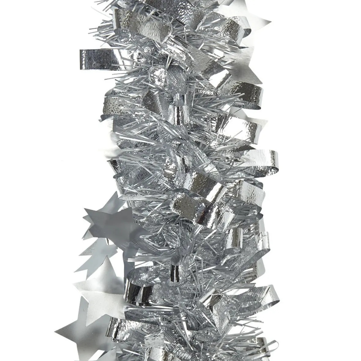 Guirlande de Noël scintillante argentée, motifs étoiles, 2 m de longueur, plastique.