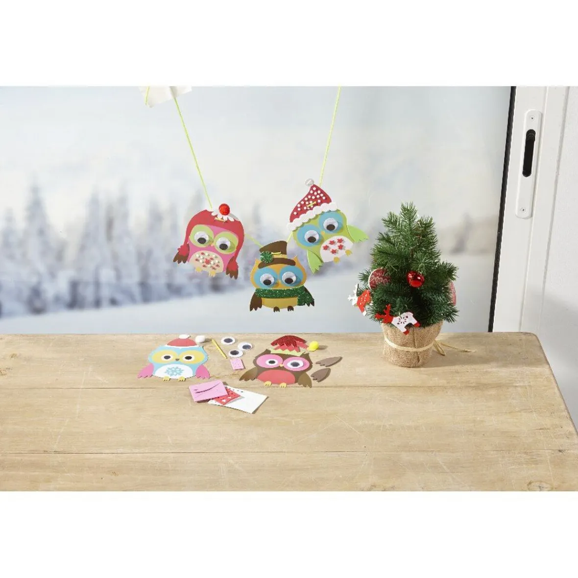 Guirlande hiboux en papier à créer,avec papier coloré, autocollants en mousse, yeux mobiles, pompons, fil en nylon et aiguille en plastique.