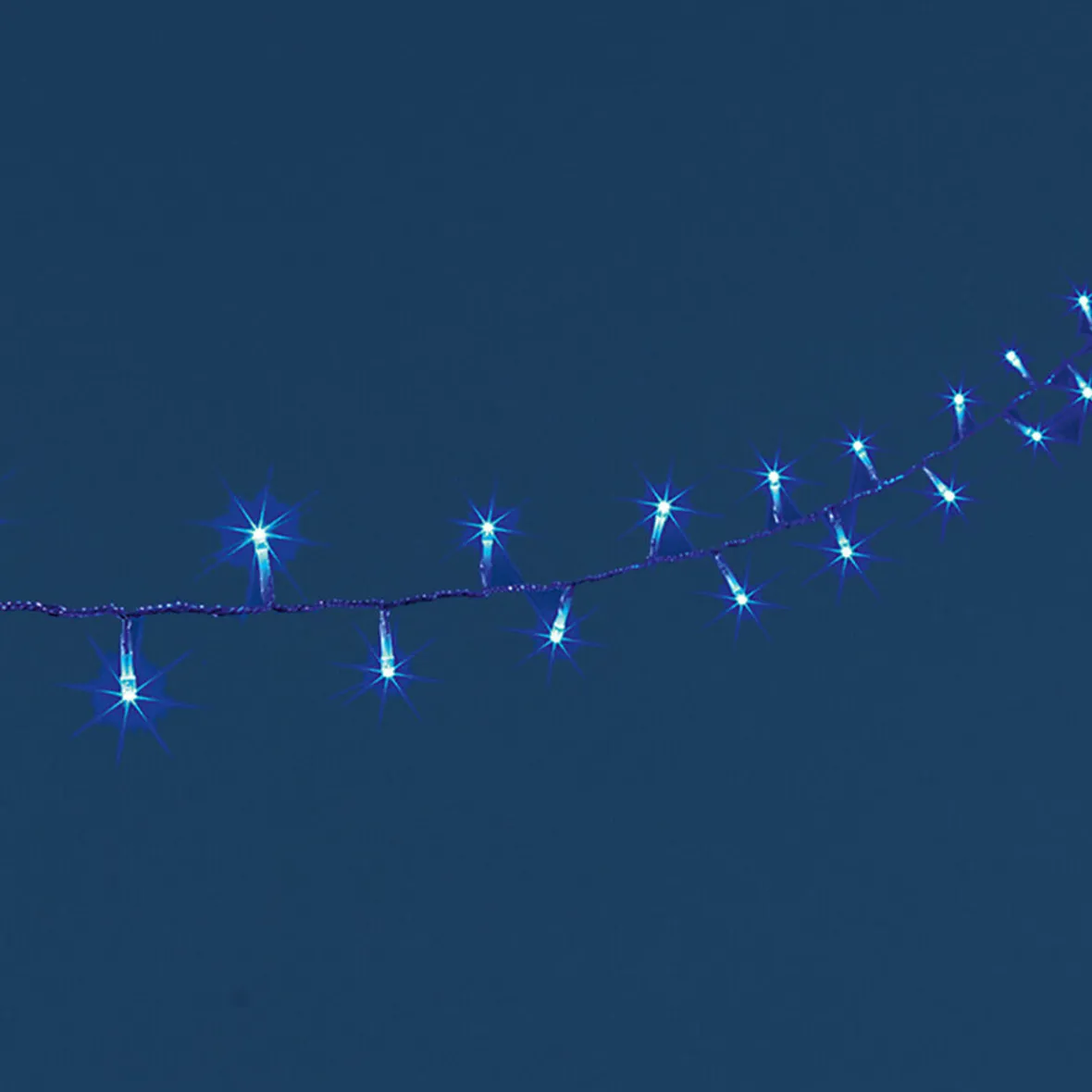 Guirlande électrique, 17,9 m d’éclairage, 180 leds bleues, 8 jeux de lumière, usage extérieur. L. câble 3 m..