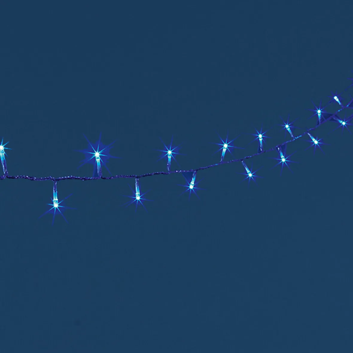 Guirlande électrique, 23,9 m d’éclairage, 240 leds bleues, 8 jeux de lumière, usage extérieur. L. câble 3 m..
