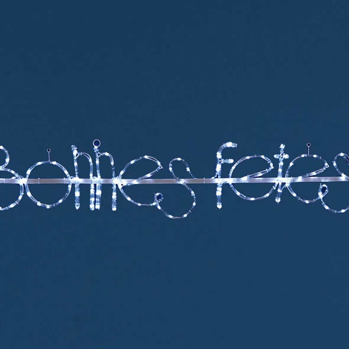 Guirlande électrique Bonnes fêtes, dim. 152xh.32 cm, 128 leds blanches, usage extérieur. L. câble 5 m…