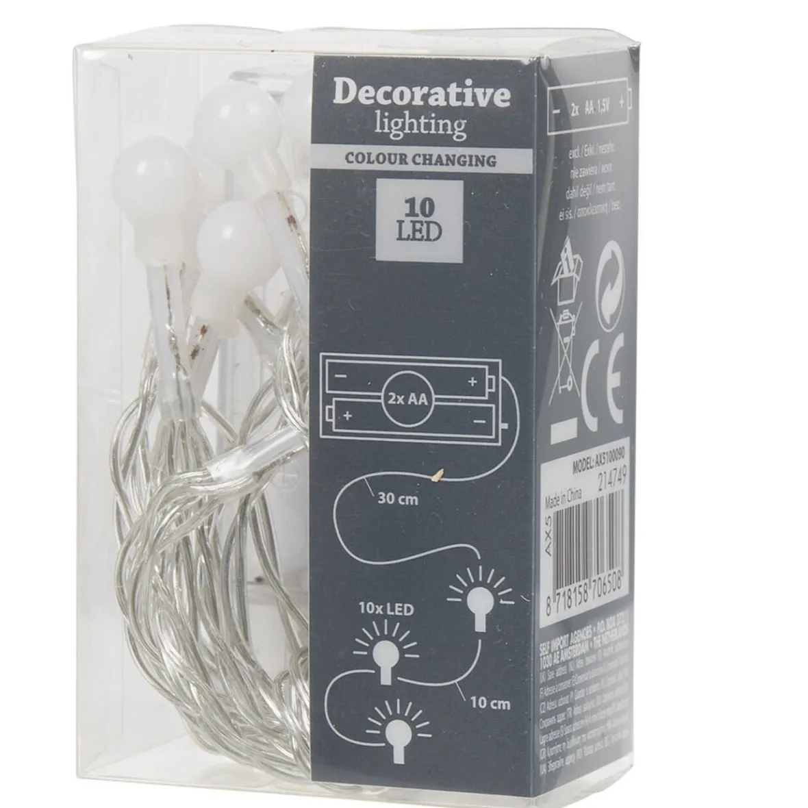 10 LED, lumière multicolore, couleurs changeantes.