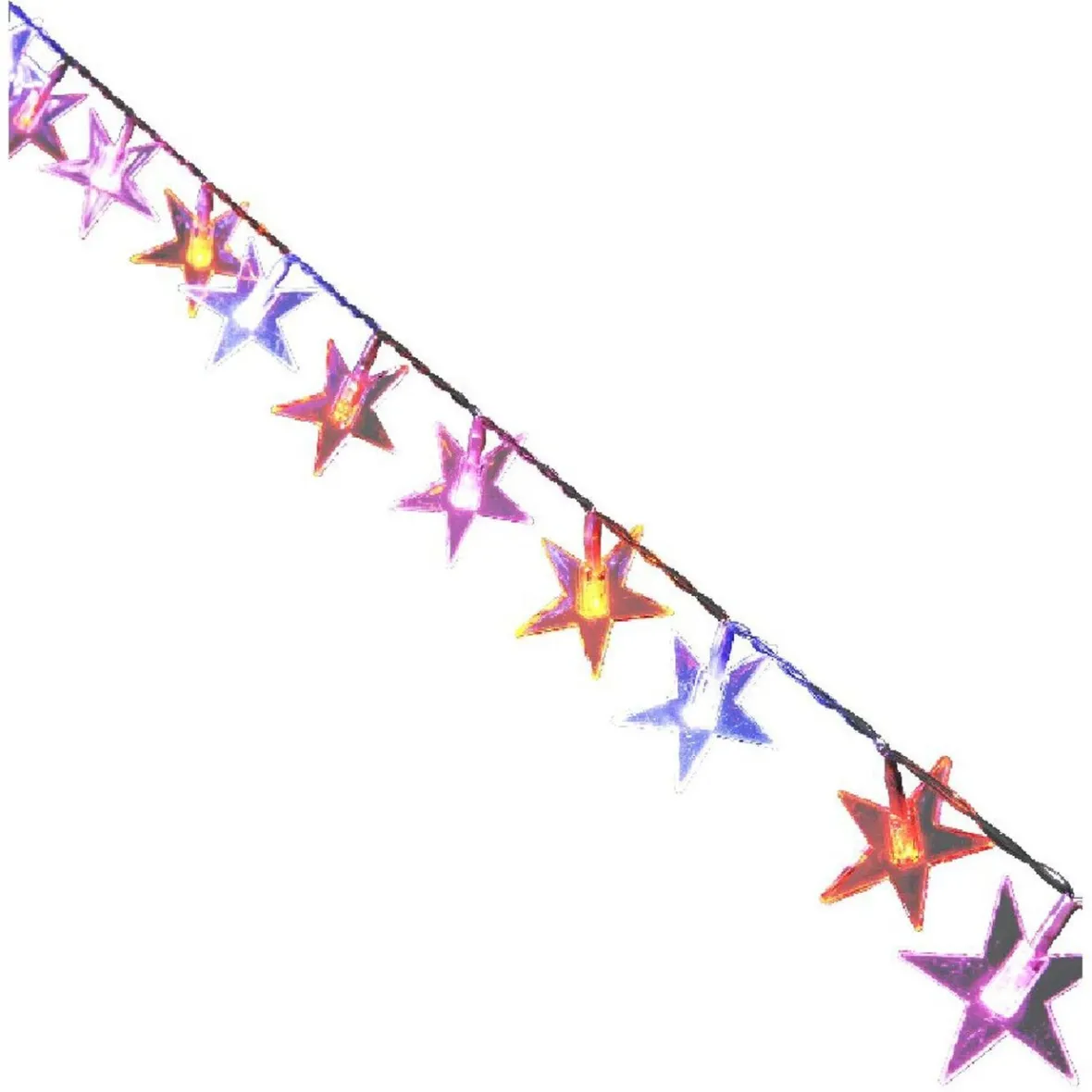 Guirlande électrique étoiles d’1 m d’éclairage, 15 LEDS multicolores, plastique, usage intérieur, fonctionne avec 1 pile LR06 non fournie..