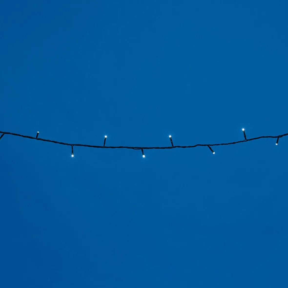 Guirlande électrique solaire offrant 5,9 m d’éclairage et 2 jeux de lumière avec ses 50 LEDs de couleur blanc froid.