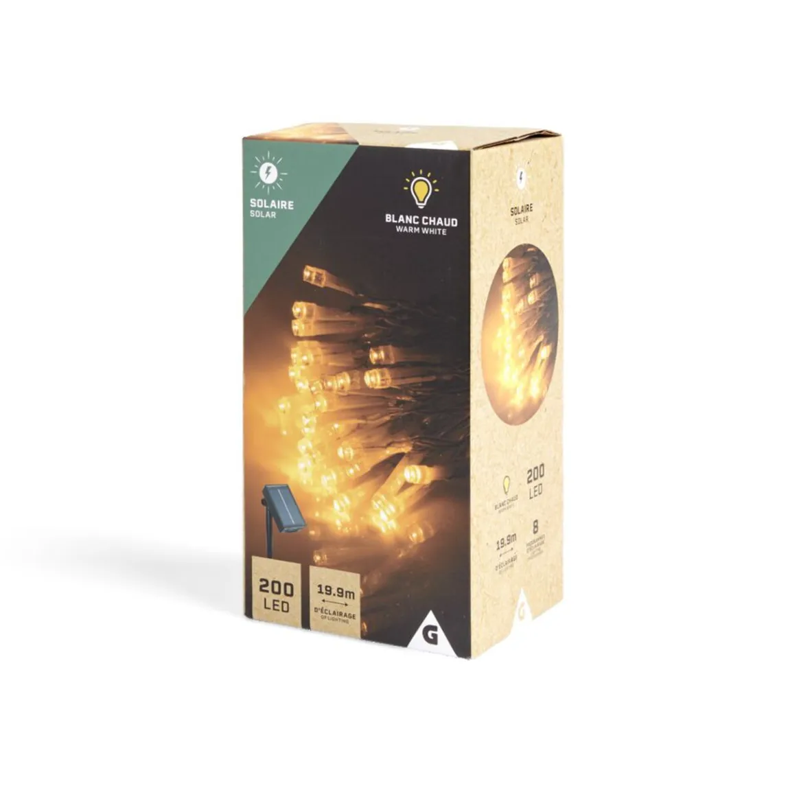 Ajoutez une touche de magie à vos espaces extérieurs avec cette guirlande solaire composée de 200 LEDs blanc chaud.