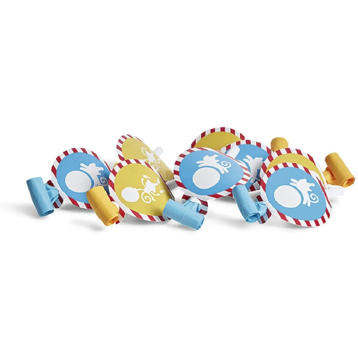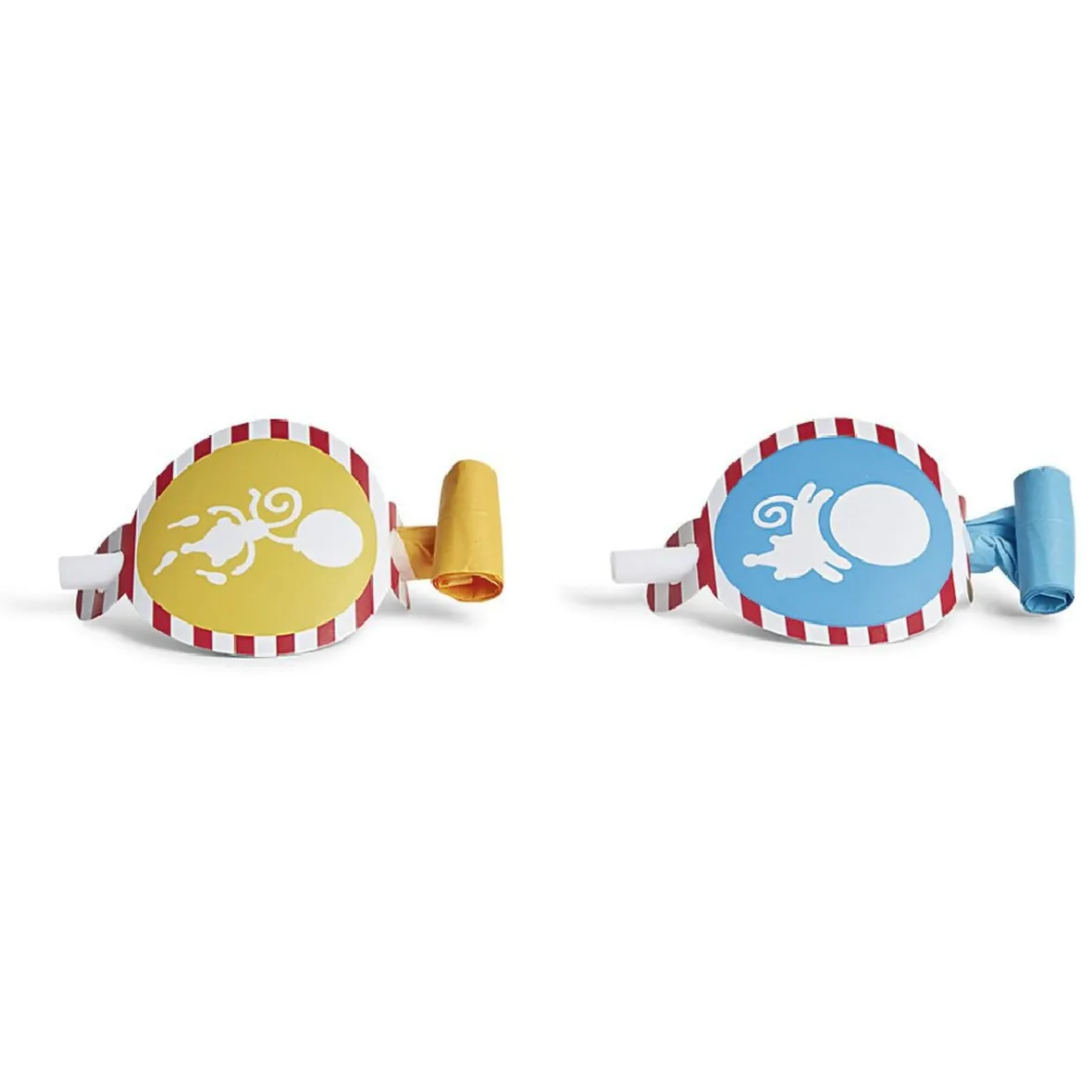 Faites du bruit avec ce lot de 8 langues de belle-mère sur le thème « Circus ». Elles sont accompagnées de 8 étiquettes avec un petit singe pouvant s’accrocher sur le sifflet.