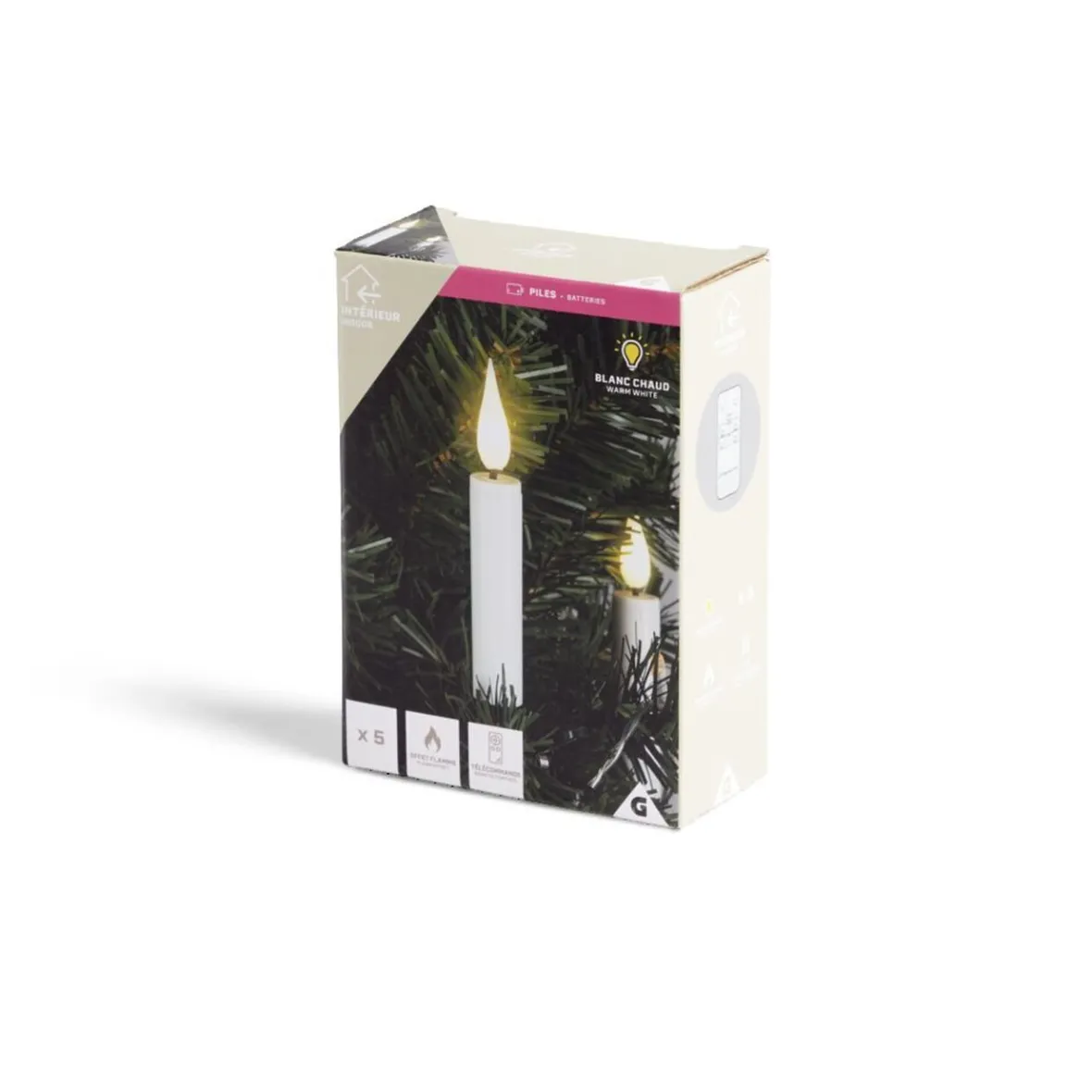 Pour une décoration de Noël intérieure chaleureuse, optez pour ce lot de 5 bougies bâton LED blanches.