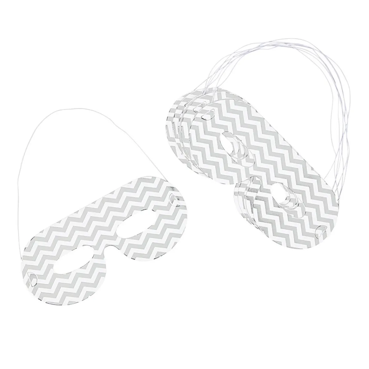 Rendez la fête encore plus folle avec ce lot de 8 masques en carton au motif zig zag de couleur noir, blanc et argenté.