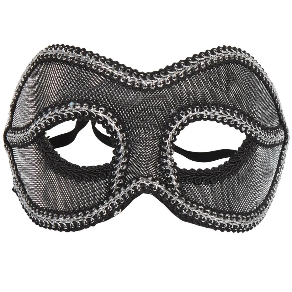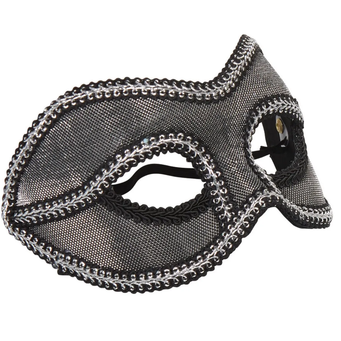 Idéal pour compléter un déguisement et pour passer incognito dans une soirée, ce loup vénitien très chic noir et gris argenté est parfait pour plonger dans l’ambiance des bals masqués.