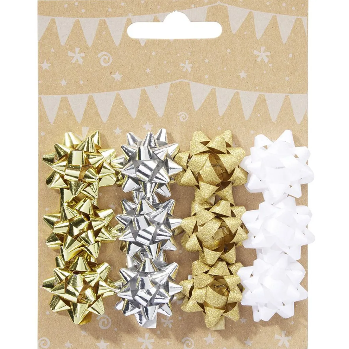Lot de 12 petits noeuds métallisés et brillants, parfaits pour venir apporter la petite touche finale à vos emballages cadeaux !