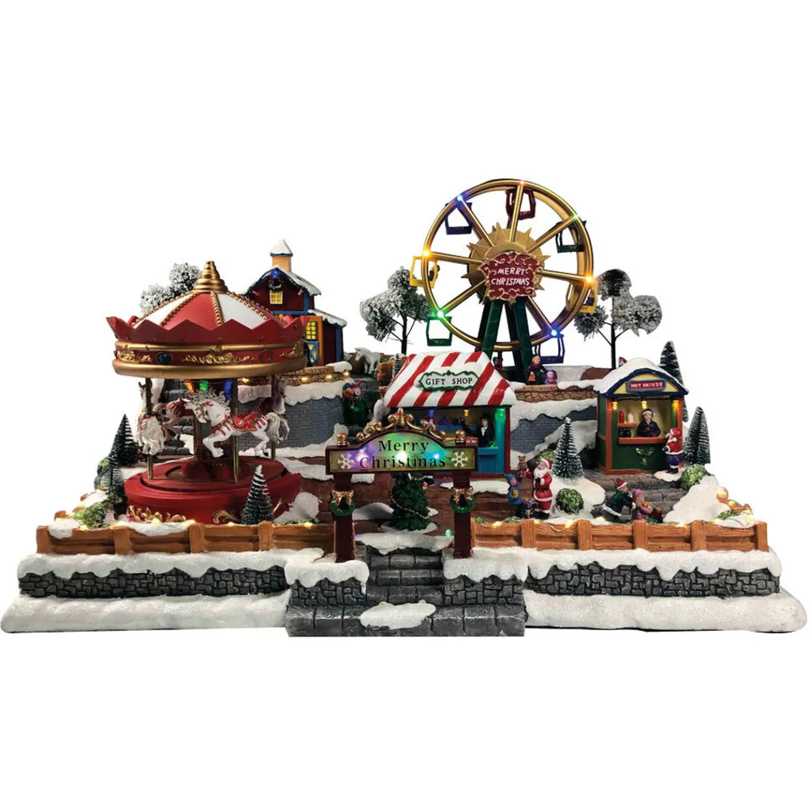 Envie de surprendre vos invités avec un décor intérieur époustouflant? Choisissez ce parc d’attractions animé fabriqué en polyrésine et en plastique. Il représente un petit village plongé dans une ambiance festive, avec des manèges, le père Noël, une grande roue, des maisons, sans oublier des lumières étincelantes. Grâce à ses 94 ampoules LED et ses 8 chansons, il apportera la joie de Noël dans votre maison.