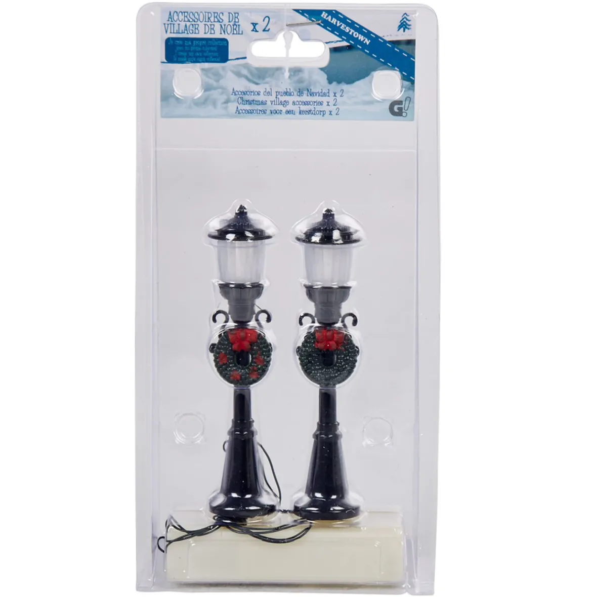 Lot de 2 petits lampadaires accessoires avec petite couronne en décoration.