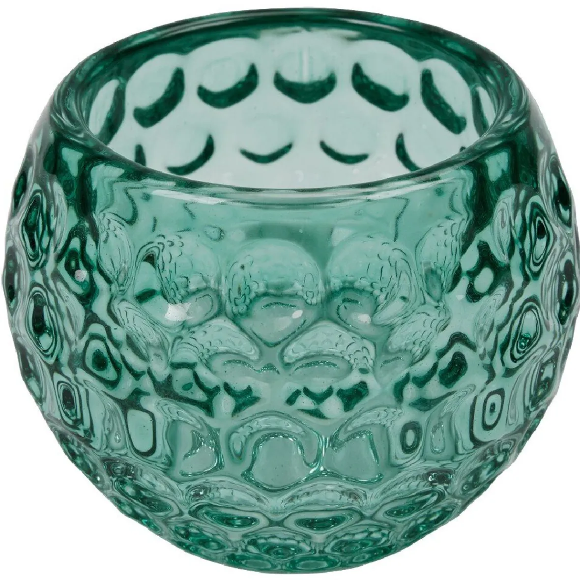 Photophore rond vert pour égayer votre table, il suffit juste de rajouter une bougie chauffe-plat (non incluse).