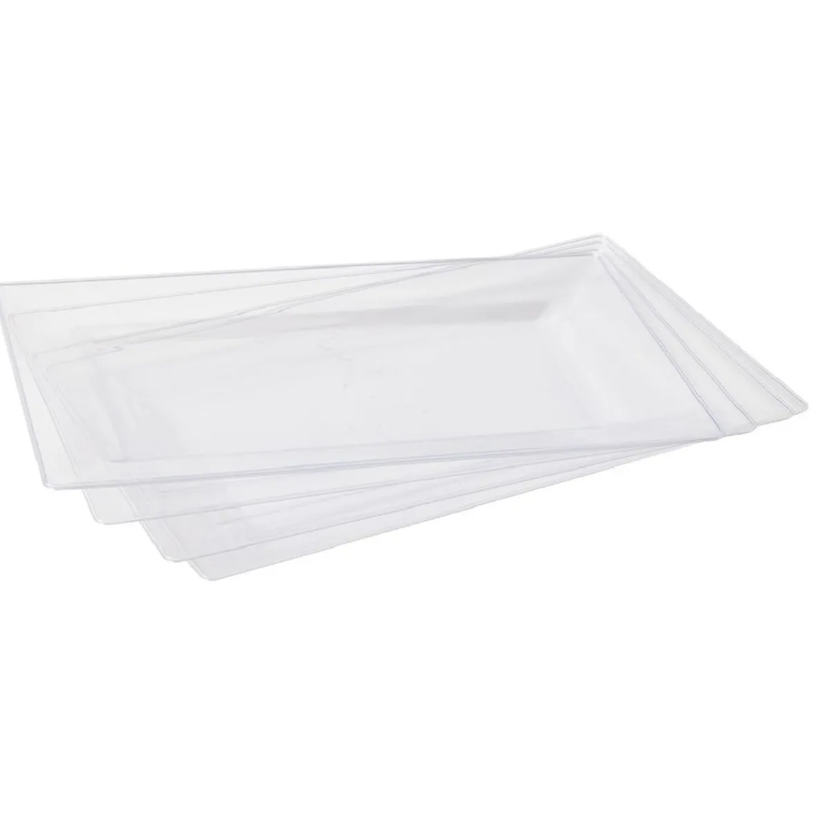 Lot de 5 plateaux transparents en plastique réutilisable, idéal pour le service d’un évènement.