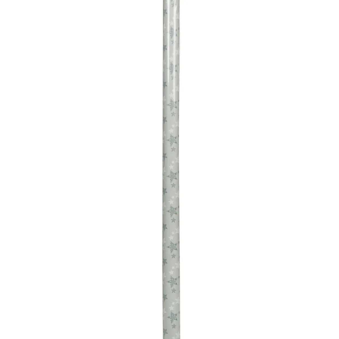 Rouleau de papier cadeau gris et blanc, motif étoiles.