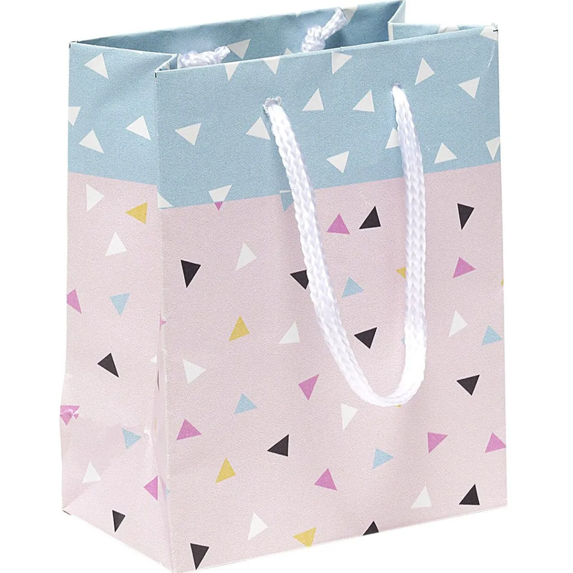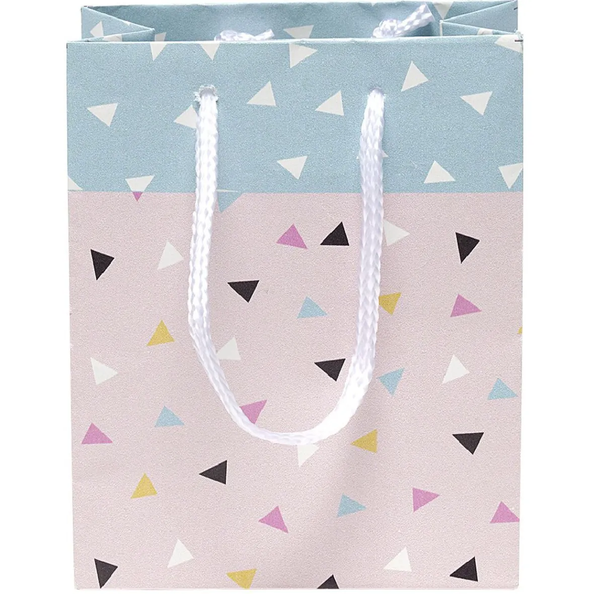Emballez tous vos présents avec ce sac cadeau petit modèle Terrazzo blanc aux motifs triangles multicolores.