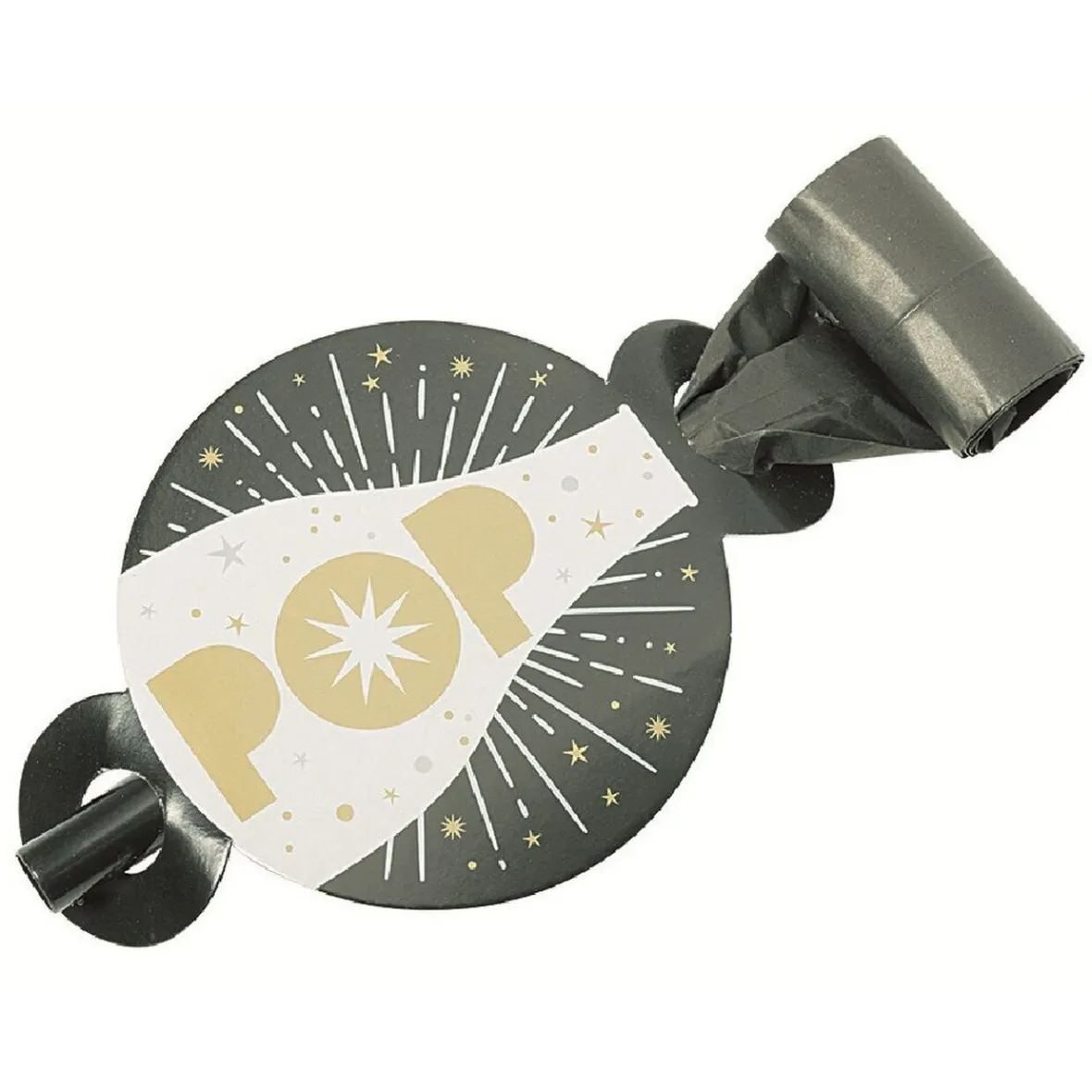 Pack de 8 sans-gênes nouvel an noir et blanc, inscription POP dorée.