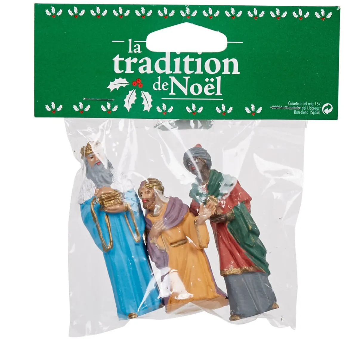 Personnages représentant les 3 rois mages debout, indispensable pour compléter la décoration de votre crèche de Noël.