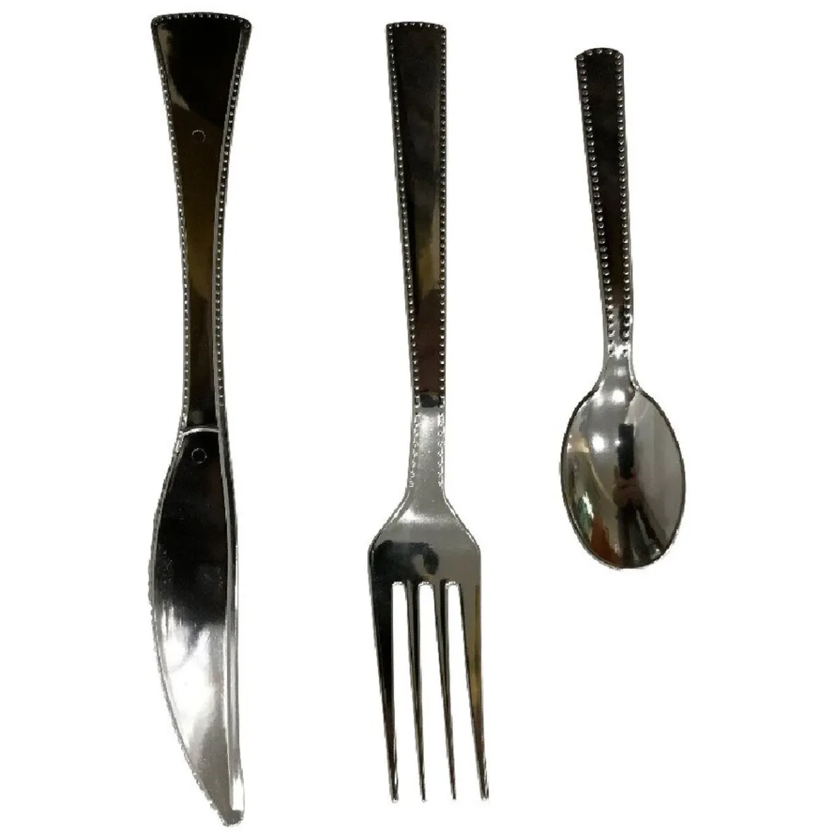 – Couleur : Blanc,Argent- 6 assiettes à dessert, 6 assiettes plates, 6 sets de 3 couverts- Matière(s) : Polystyrène