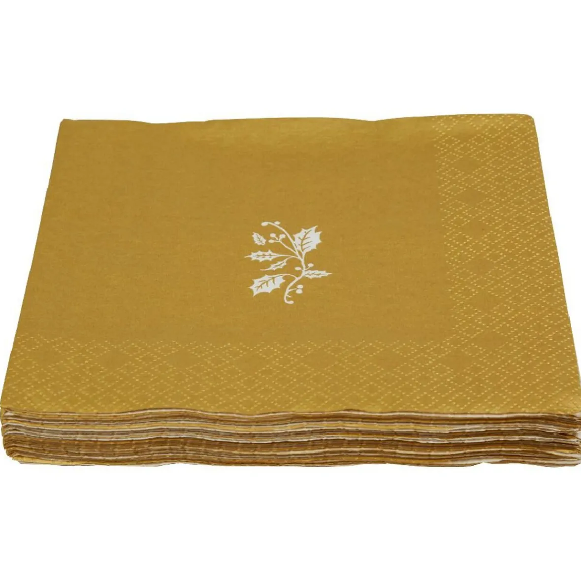 Lot de 20 serviettes à motif joyeux Noël en papier, idéal pour compléter votre décoration de Noël d’une touche dorée.